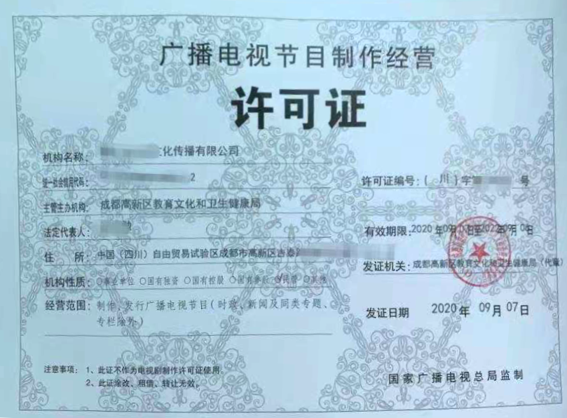 廣播電(diàn)視(shì)節目制(zhì)作(zuò)經營許可(kě)證